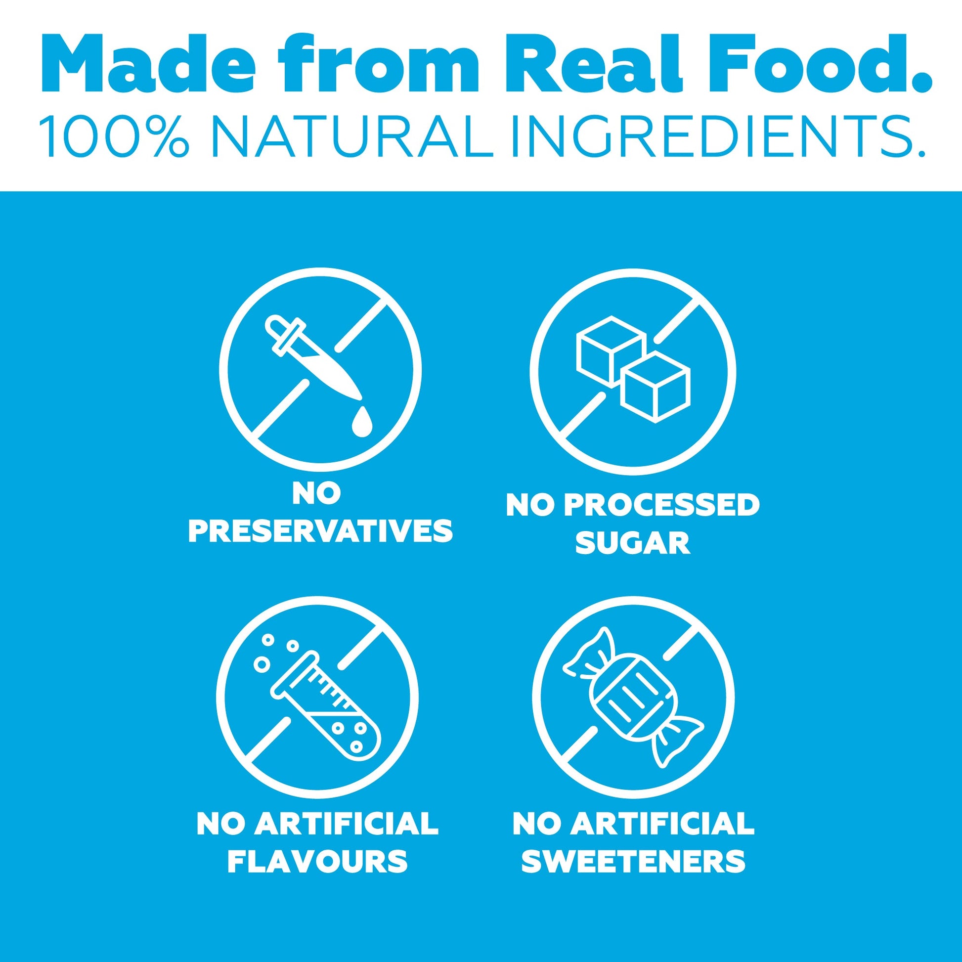 - No artificial preservatives: We don't want our bars lasting years on the shelf. We focus on what's important - long term health of our consumers.